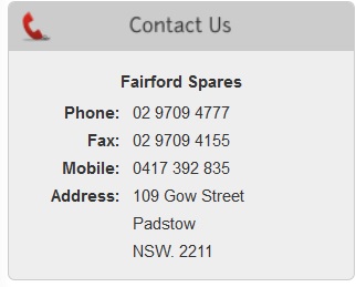 Parts can be sent throughout Australia or overseas. Call the Fairford Spares team for availability and pricing on your requirements and they will dispatch the goods to you via the first available transport link.